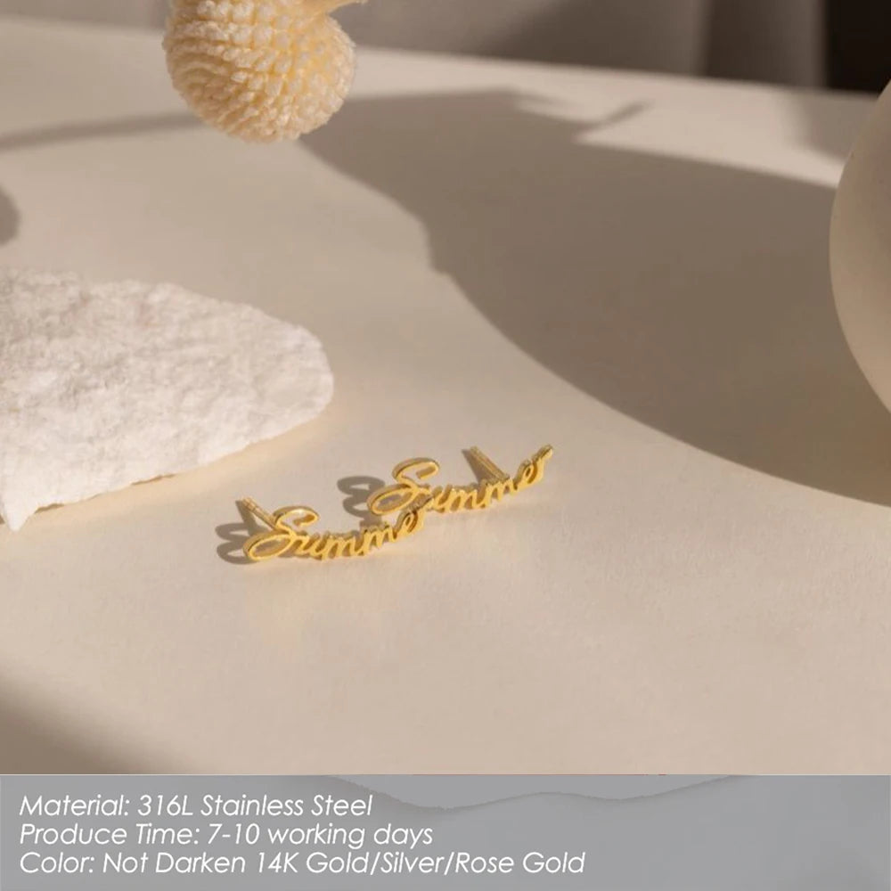 Customized Name Earrings for Women Gold Plated Personalized Letter 316L Stainless Steel Stud Earrings Jewelry Gift
