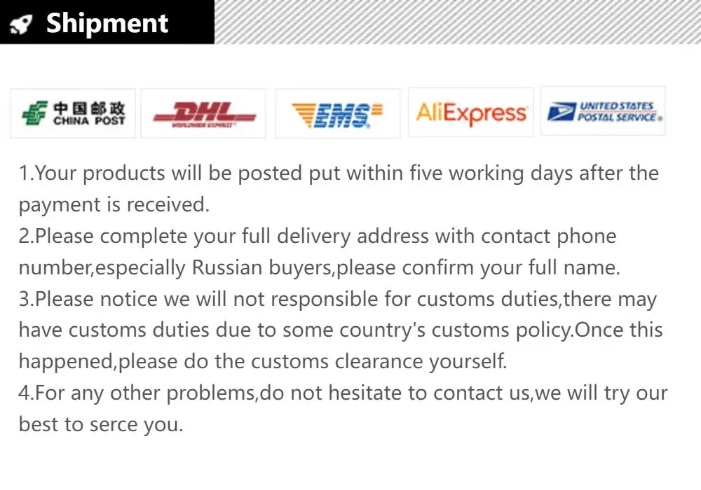 ご注文金額が15米ドルを超える場合、追跡可能な配送方法で発送されます。
